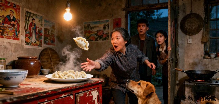 “你说邪门不邪门?那饺子跟长了翅膀似的,‘嗖’地一下就从盘子里飞出来了!”